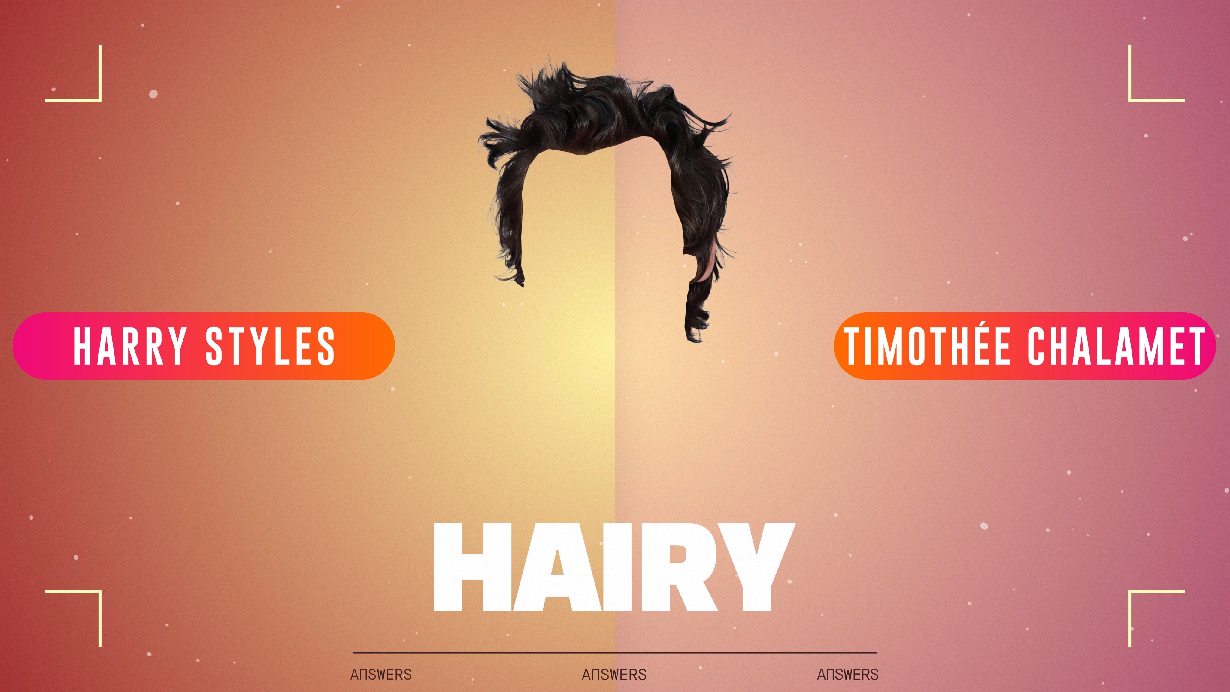 Can you recognize a celeb just by their hair? In Hairy Answers, you'll see only the hairstyle—choose left or right and see if you really know who’s underneath the ‘do!