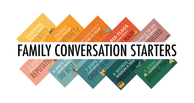 Family Conversation Starters are designed to help parents and their children connect in meaningful conversations around real-life issues. These cards are designed to give parents confidence, clarity, and practical steps to start conversations. Each card offers: