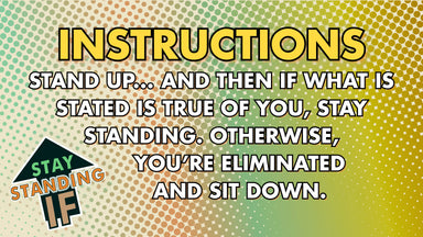 Is this game just a mixer, or is it the ultimate on-the-spot food challenge?!?! Maybe something in between? It’s up to you - have the whole room stand up (or have students who can’t stand raise a hand), and then having them stay standing if what’s read is true of them. Otherwise, they sit down until the game is over. The catch? The first six slides are all about simple experiences, but the last nine give you the ability to test everyone still in with on-the-spot food challenges! Play however you’d like, and see who is left standing.