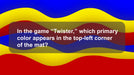 Display a question on the screen where the answer is one of the three primary colors: Red, Yellow, or Blue. Players must quickly choose their answer by running to one of three predetermined zones—Left for Red, Middle for Yellow, and Right for Blue. Once everyone is in place, reveal the correct answer. Anyone in the wrong zone is out and sits down. The game continues with new questions until only one player remains standing. That person is crowned the Primary Colorschampion!