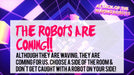 In Attack of the Waving Robots, a video will play showing robots moving and waving as they approach different sides of the screen. Before the video ends, players must choose a side of the room to stand on. If the robots end up in your area, you're out! Choose wisely, survive the wave, and stay in the game!