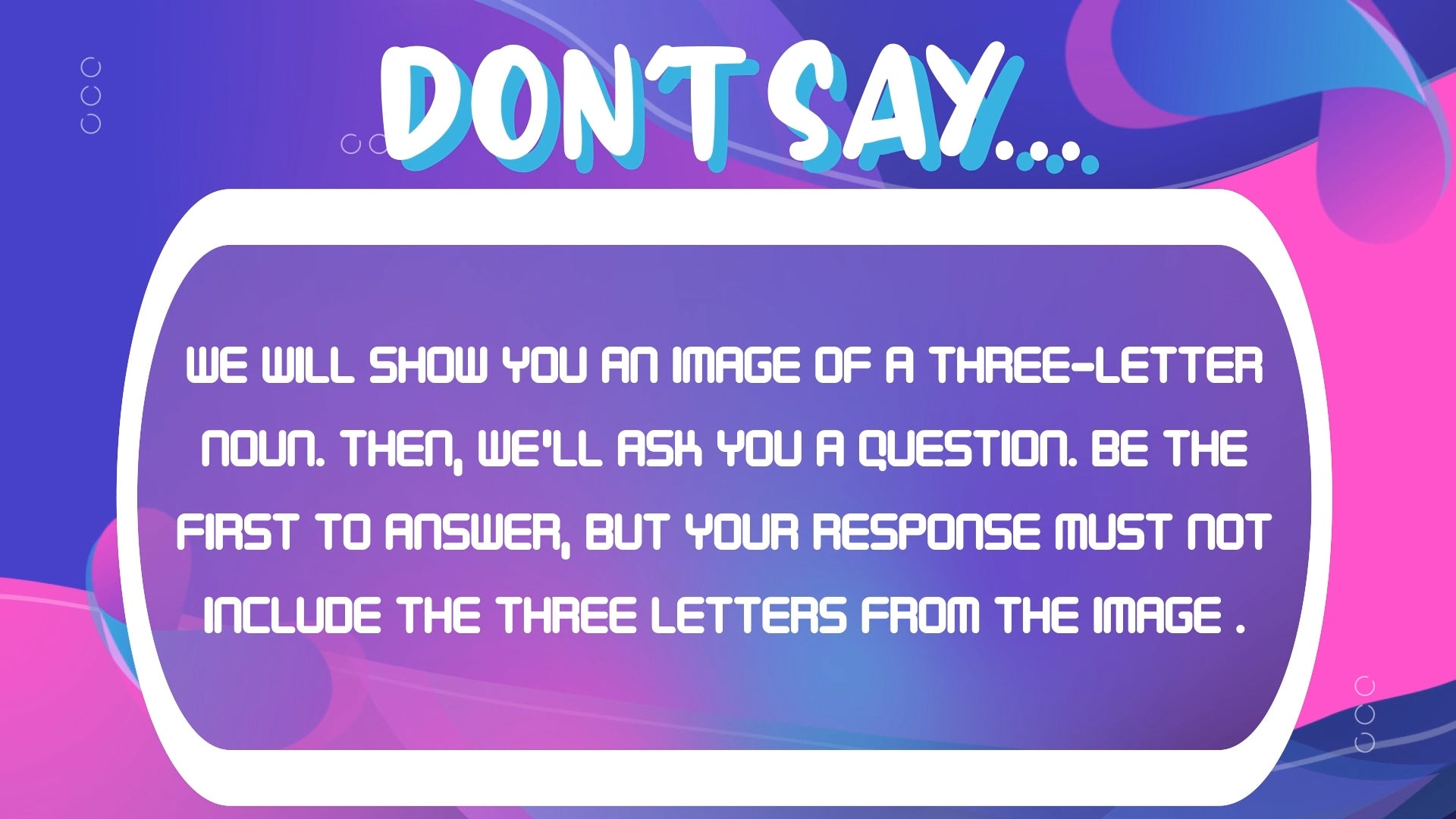 In Don’t Say…, each round features a question with a hidden twist: you’ll also be shown an image of a word you can’t say in your answer. For example, if the image is a pan and the answer is “pancake,” you must say “cake” instead. Teams race to shout out the correct modified answer—first team to get it right earns a point!