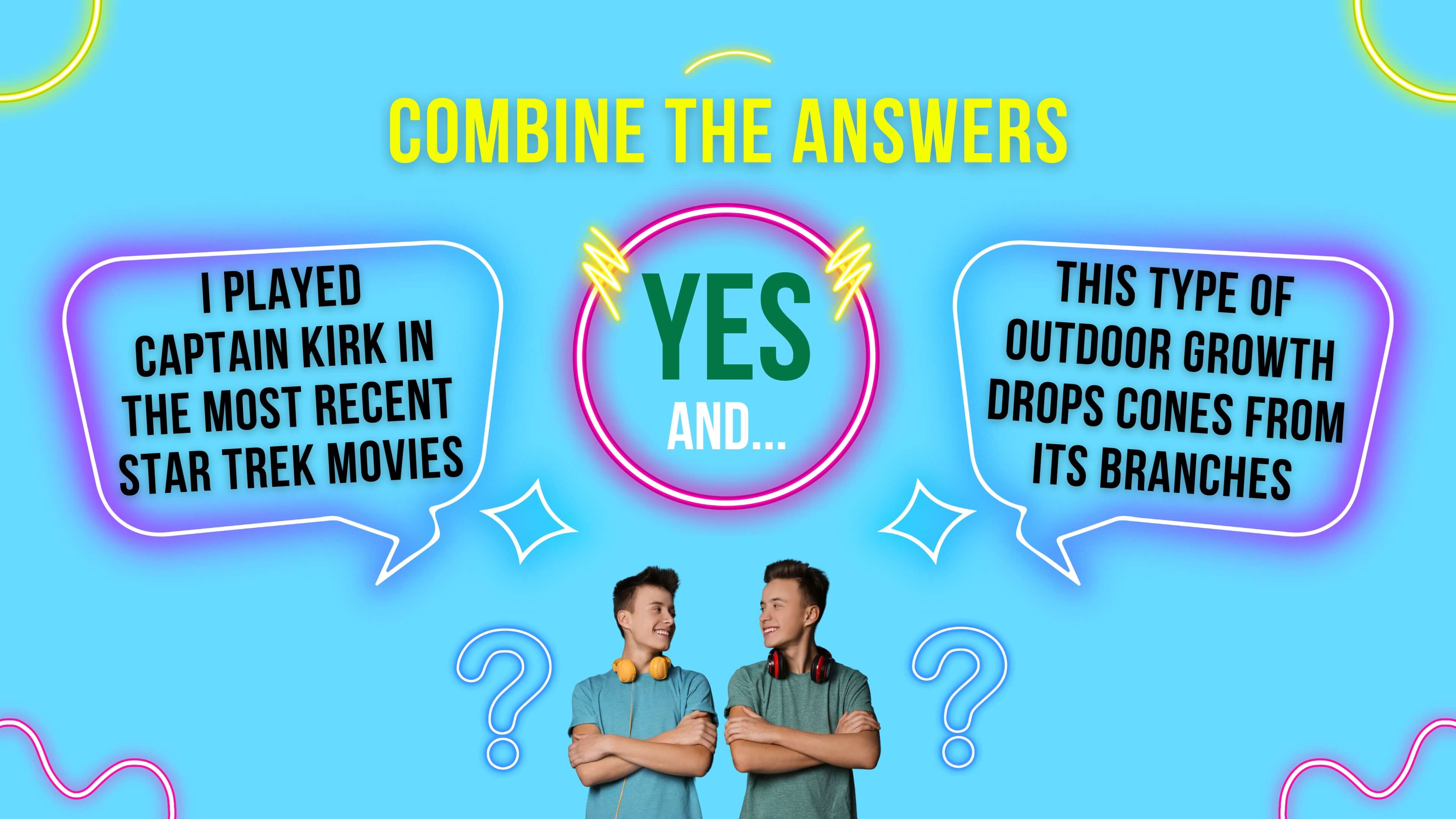 Welcome to “Yes, And…” – the ultimate game for students to compete against each other while sharpening their wit and creativity! Players will put their puzzle-solving skills to the test through quick thinking and wordplay. With each round, they'll be presented with two clues, each pointing to a different answer… that then are combined into one epic blend of an answer with the middle word tying them together. It's an energetic mental race against the clock and their fellow teammates to see who can assemble the accurate answer!