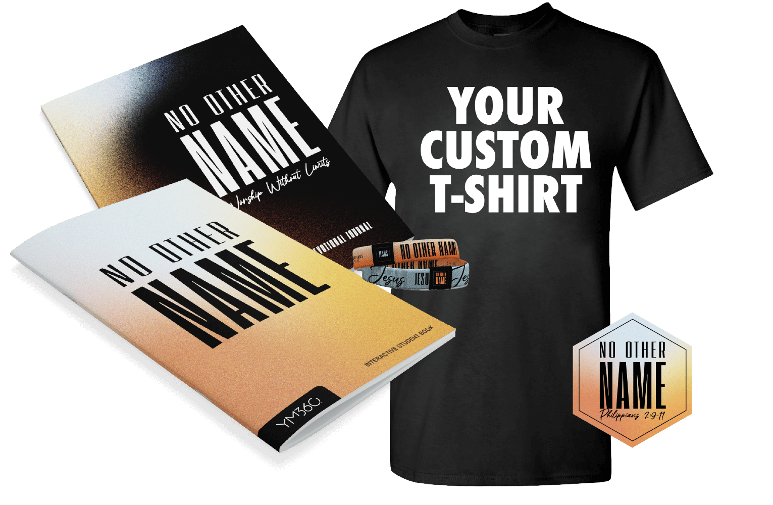 The No Other Name Student Pack provides the best impact to your students and the best value for your No Other Name event. This bundle contains 1 No Other Name Camp Notebook, 1 No Other Name Follow-Up Devotional Journal, a Custom designed T-Shirt, 1 Woven Bracelet, and a No Other Name Sticker, all at special bundle pricing.